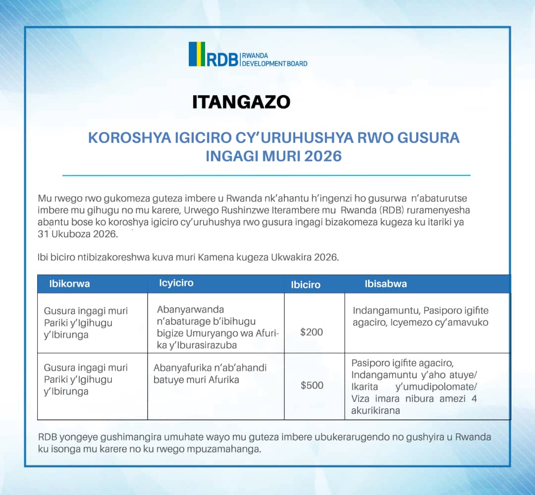 Ibi biciro bishya bizagenderwaho muri uyu mwaka wa 2026 usibye mu gihe kiri hagati ya Kamena n’Ukwakira. Muri icyo gihe, igiciro cyo gusura ingagi kizaba ari Amadolari 1,500 y’Amerika.
